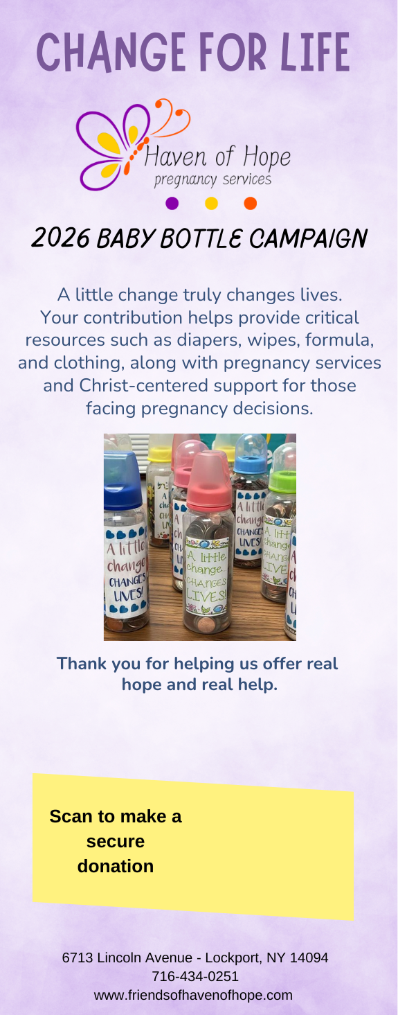 Every little bit helps to truly change lives. Your contribution helps provide critical resources such as diapers, wipes, formula and clothing, along with pregnancy services and Christ-centered support for those facing pregnancy decisions.